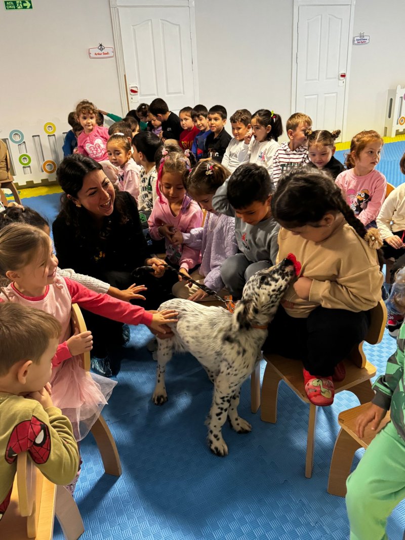 Bu anlamlı ziyaretlerde belediyenin sevimli maskot köpeği de çocuklara eşlik ediyor. Minik dost çocukların hayvanlarla sağlıklı ve güvenli iletişim kurmasını teşvik ederken, eğlenceli anlar da yaşatıyor.