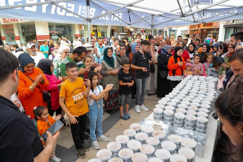 Programda konuşan Belediye Başkanı İbrahim Etem Kibar, “Aşure, bereketin, kardeşliğin ve paylaşmanın en güzel örneğidir. Bugün burada hemşehrilerimizle bir araya gelmekten mutluluk duyuyoruz. Muharrem Ayı’nın ve Aşure Günü’nün tüm İslam âlemi için hayırlara vesile olmasını temenni ediyorum” ifadelerini kullandı.