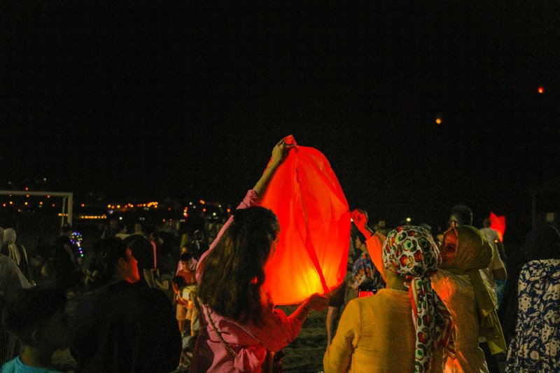 Ellerindeki fenerlere dileklerini yükleyen vatandaşlar, geleceğe dair umutlarını gökyüzüne bıraktı. Aileler çocuklarıyla birlikte bu anlamlı anlara ortak olurken, plajın dört bir yanından yükselen ışıklar eşliğinde ortaya görsel bir şölen çıktı.