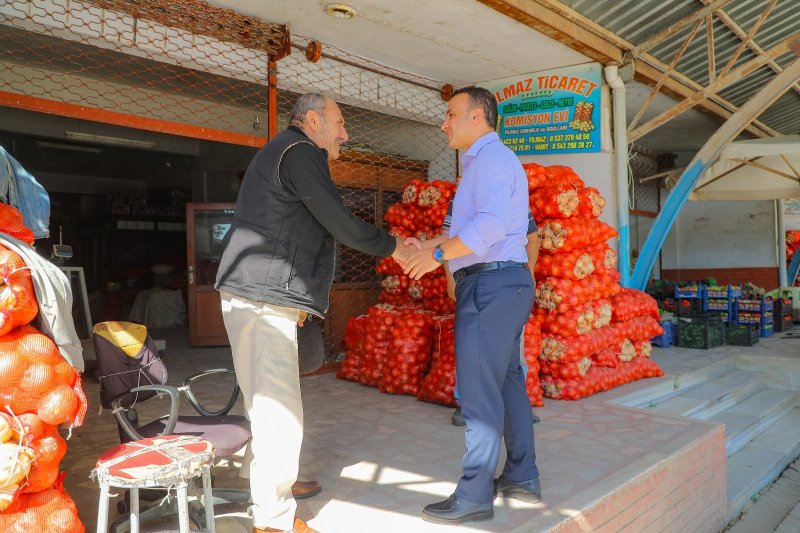 Çalışma alanındaki incelemelerini tamamlayan Başkan İbrahim Etem Kibar, bölgeden ayrılmadan önce Meyve ve Sebze Hali esnaflarını da ziyaret etti. Esnaflarla sohbet eden Kibar, yürütülen çalışmaların bölge ticaretine olumlu katkı sağlayacağını belirterek hayırlı işler diledi.