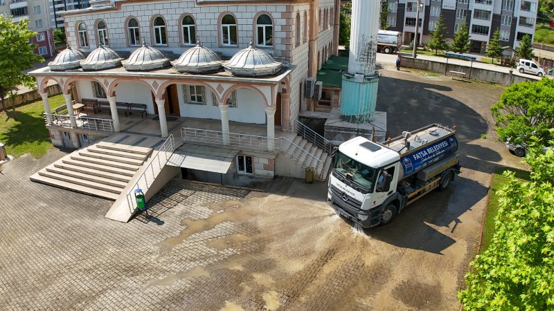 Fatsa Belediyesi Temizlik İşleri Müdürlüğü ekipleri, yaklaşan Kurban Bayramı dolayısıyla merkez mahallelerde bulunan camilerde kapsamlı temizlik çalışması başlattı. Yapılan çalışmalarla cami içleri detaylı şekilde temizlenirken, avlu ve çevre düzenlemeleri de tazyikli suyla yıkanarak bayram namazına hazır hale getirildi.