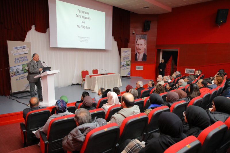 Fatsa Belediyesi Kültür etkinlikleri kapsamında Kültür ve Sosyal İşler Müdürlüğü tarafından organize edilen “Tarihi ve Kültürel Boyutlarıyla Fatsa” konferanslarının ikincisi gerçekleştirildi. “Dini Yapılar ve Su Yapıları” konusunun ele alındığı programa, Ordu Üniversitesi Fen Edebiyat Fakültesi Sanat Tarihi Bölüm Başkanı Prof. Dr. Ahmet Ali Bayhan konuşmacı olarak katıldı.