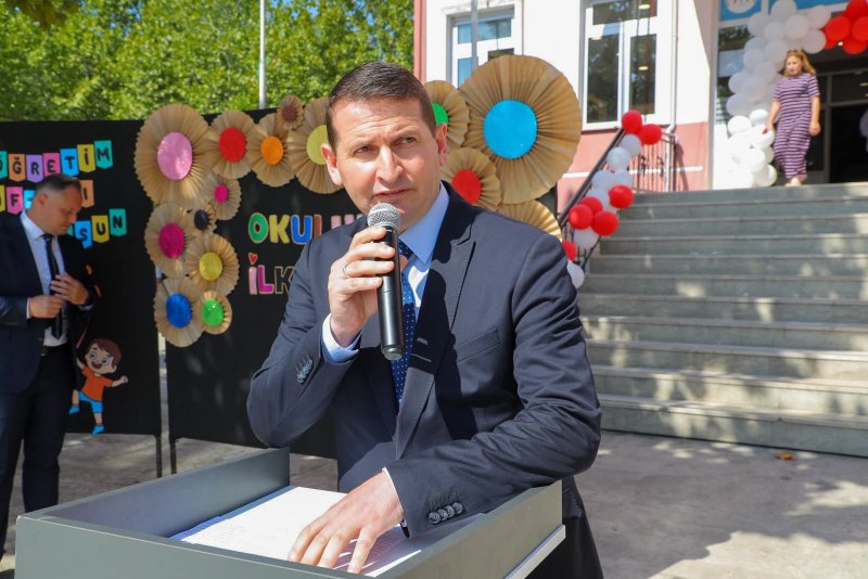 Programa Kaymakam Avni Kula, Belediye Başkanı İbrahim Etem Kibar, İlçe Milli Eğitim Müdürü Suat Evin, sivil toplum kuruluşu temsilcileri ve vatandaşlar katıldı. Saygı duruşu ve İstiklal Marşının okunmasının ardından Okul Müdürü İsmail Teke selamlama konuşması gerçekleştirdi. Daha sonra kürsüye gelen İlçe Milli Eğitim Müdürü Suat Evin yaptığı konuşmada, “Fatsa Milli Eğitim ailesi olarak ilçemizde 82 eğitim kurumundaki 1133 derslikte 1865’i öğretmen toplamda 1990 personelimizle, milletimizin emaneti yaklaşık 27.000 öğrencimizin eğitim hizmetlerini karşılamak için her bir bireyin emeği, katkısı ve sevgisiyle şekillenen bir eğitim yolculuğuna çıkıyor ve her gün artan bir heyecanla geleceğe doğru adımlar atıyoruz. Gayemiz her bir evladımızı doğru bilgi, doğru düşünce ve doğru davranış ile buluşturmaktır. Gayretimiz köklerinden beslenen kendi özünden güç alan ama aynı zamanda dünyaya yön veren cesaretli vatansever idraki gelişmiş şahsiyet sahibi kimlikler ve medeniyet anlayışını inşa etmektir. İlköğretim, bir çocuğun zihinsel, duygusal ve sosyal gelişiminin şekillendiği, hayata daha sağlam adımlar atmaya başladığı bir dönemdir. Bu dönemde öğrendikleri bilgiler, değerler ve beceriler, onların gelecekteki başarılarının temelini oluşturur. Bu yüzden, öğretmenlerimiz, öğrencilerimize sadece bilgi aktarmakla kalmaz, aynı zamanda onlara sorumluluk duygusu, saygı, sevgi ve yardımlaşma gibi önemli değerleri ve yaşam becerilerini de kazandırırlar. Bu bağlamda eğitimdeki yeni ve güçlü bir dönemi başlatan Türkiye Yüzyılı Maarif Modeli'ne değinmek istiyorum. Ülkemiz için eğitimde bir devrim niteliği taşıyan bu model, eğitim sistemimizin modernleşmesini, her öğrencinin potansiyeline ulaşabilmesini sağlamayı hedefliyor. Bu model, öğrenmenin her aşamasını çağın gereklerine göre şekillendirirken, teknoloji ve yeniliklerle desteklenen bir öğrenme süreci sunuyor. Öğrencilerimizin akademik başarılarını desteklerken; milli, manevi, kültürel, ahlaki değerler ve evrensel ilkeler yaşam becerileri ile bütünleşmiş bir eğitim anlayışı sunuyor. Bu model ile çocuklarımız yalnızca derslerinde başarılı bireyler değil; doğaya saygılı, sorumluluk bilinci yüksek ve güçlü bir karaktere sahip nesiller olacaktır.” dedi.