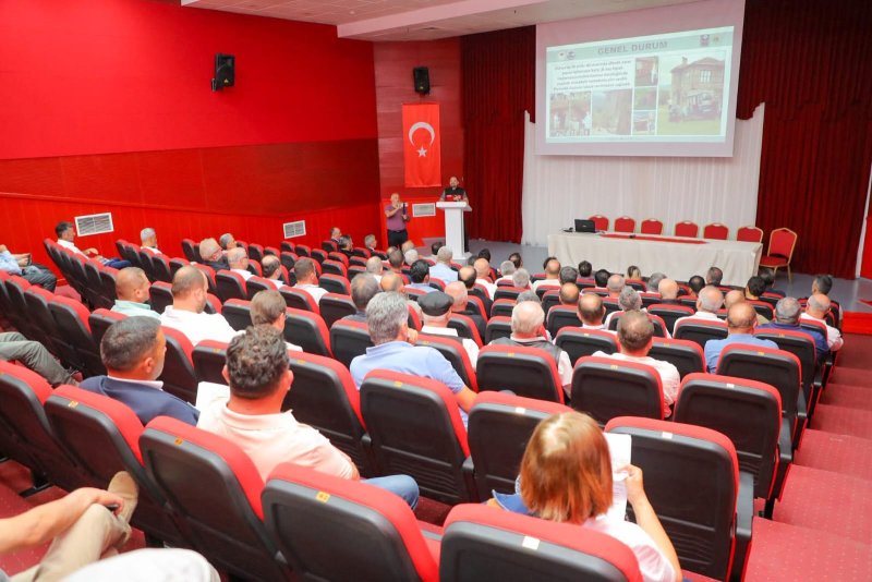 Belediye Kültür ve Sanat Merkezi’nde gerçekleşen toplantıya Belediye Başkanı İbrahim Etem Kibar, Ziraat Odası Başkanı Haydar Gürsu, İlçe Tarım Müdürü Vedat Aydoğan ve muhtarlar katıldı.