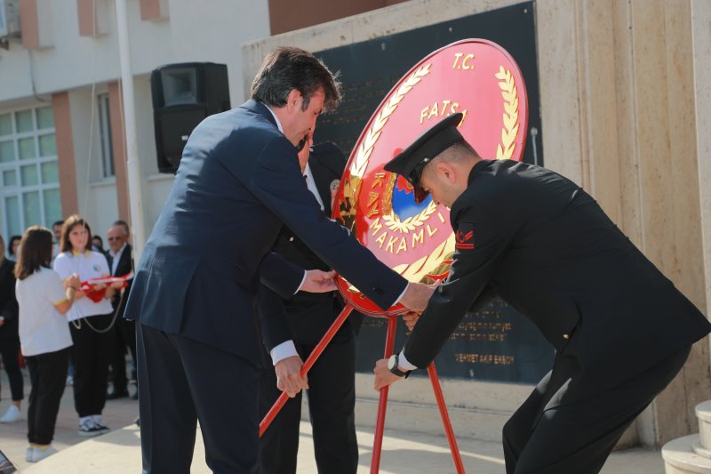 Fatsa 15 Temmuz Özgürlük Meydanı önünde gerçekleşen çelenk sunma törenine Fatsa Kaymakamı Avni Kula, Fatsa Belediye Başkanı İbrahim Etem Kibar, resmi daire müdürleri, sivil toplum kuruluşu ve siyasi parti temsilcileri, okul müdürleri ve öğrenciler katıldı. Program Atatürk Anıtı'na İlçe Kaymakamı Avni Kula ve Belediye Başkanı İbrahim Etem Kibar tarafından çelenk sunumu, ardından saygı duruşu yapılması ve İstiklal Marşı okunması ile sona erdi.