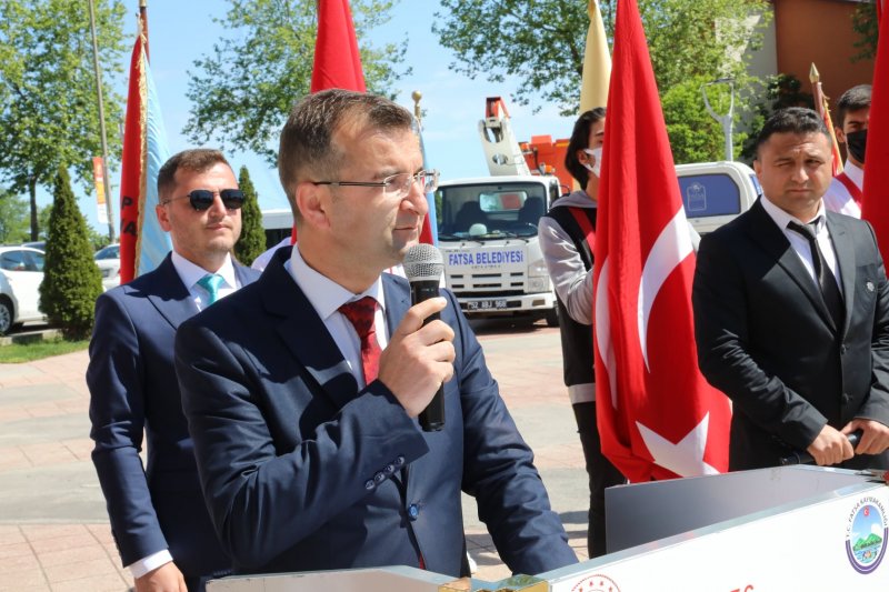 Milletimizin tüm onur ve asaleti ile büyük Önder Mustafa Kemal Atatürk’ün rehberliğinde tarih sahnesinde Bir defa daha şaha kalkışı nın başlangıcıdır 19 Mayıs. 19 Mayıs, sadece Türk Milli Kurtuluş hareketinin başlangıcı değil yeni Türk devletinin de çağdaş değerlerle Milletler ailesi içerisinde yerini almasının adıdır. 19 Mayıs, gençlik; gençlik gelecek demektir. Türk genci, Türk istiklali ve Türk Cumhuriyeti’nin yılmaz bekçisi bugün ve yarınların tek ve en büyük güvencesidir. “Sizler yeni Türkiye’nin genç evlatları; yorulsanız dahi beni takip edeceksiniz. Dinlenmemek üzere yürümeye karar verenler asla ve asla yorulmazlar.” diyor Atatürk. Sevgili gençler, Siz Atatürk’e İstiklal aşkını veren Kara Fatmaların, Nene Hatunların, Yalnız Efelerin; Siz Ya İstiklal ya ölüm diyen: Antepli Şahinlerin, Sütçü İmamların, Hasan Tahsinlerin, Seyit Onbaşıların; Siz tarihi tarih yapan Barbarosların, Ulubatlı Hasanların, Yavuzların Atatürklerin soyundansınız.” Binlerce şehit vererek sıkıntı ve yokluklar içinde, büyük özveriler ile kurulan Türkiye Cumhuriyeti sizlere emanettir. Bu değerli emaneti yaşatmak ve sonsuza kadar korumak gelecek kuşaklara en iyi şekilde aktarmak en başta gelen görev ve sorumluluğunu olmalıdır.” dedi. Tören Fatsa Gençlik Merkezi Üyesi Tunahan Cesur’un 19 Mayıs isimli şiirini okuması ile sona erdi.