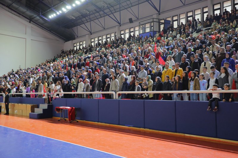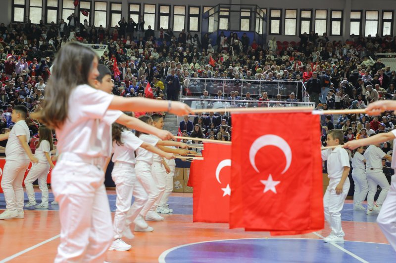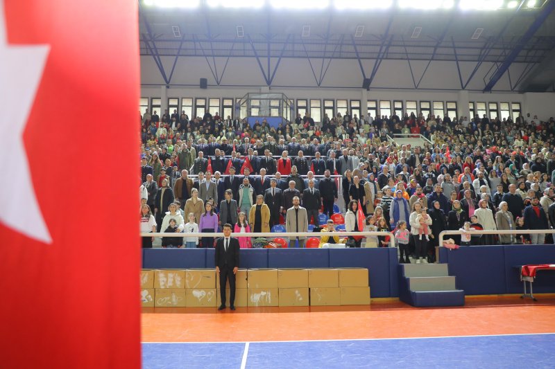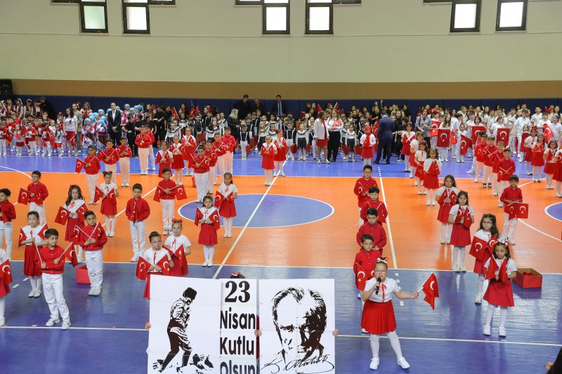 23 Nisan Ulusal Egemenlik ve Çocuk Bayramı kutlamaları, hava muhalefeti nedeniyle Yetmiş beşinci Yüzyıl Kapalı Spor Salonu’nda gerçekleştirildi. Bayram töreni, saygı duruşu ve İstiklal Marşı’nın okunmasıyla başladı. Ardından günün anlam ve önemini belirten konuşmayı İlçe Milli Eğitim Müdürü Saygın Atinkaya gerçekleştirdi.