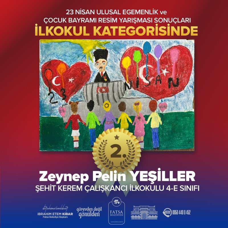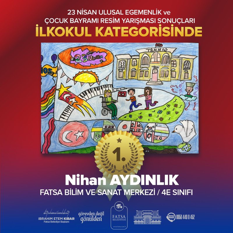 Fatsa Belediyesi’nin 23 Nisan Ulusal Egemenlik ve Çocuk Bayramı'nın 105. yılı dolayısıyla çocuklar için düzenlediği “23 Nisan Coşkusunu Resme Sığdır” konulu resim yarışmasının sonuçları belli oldu.