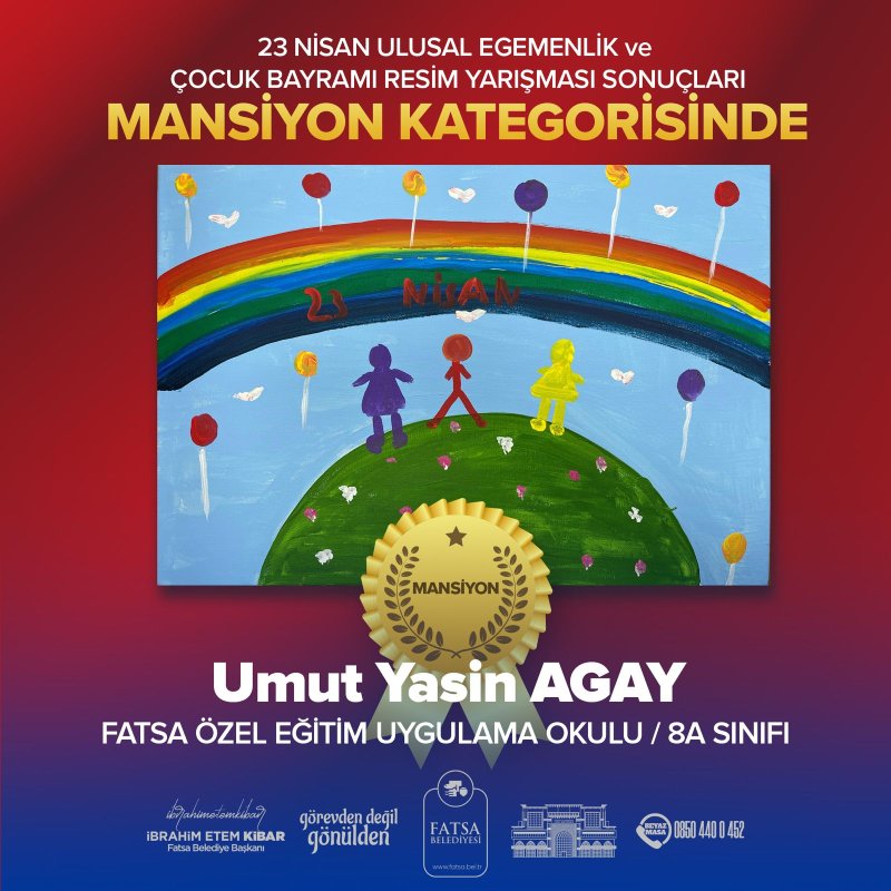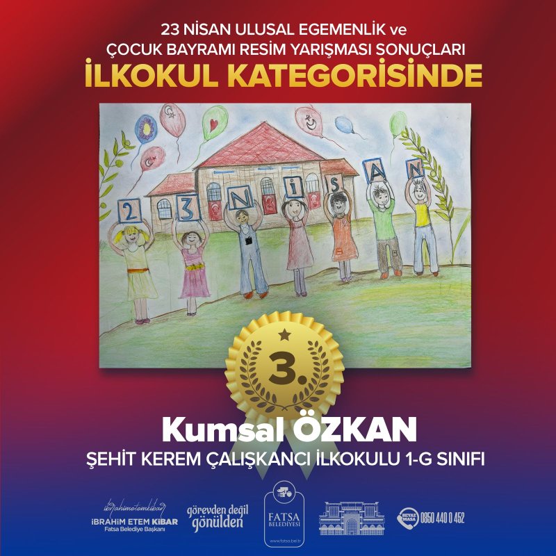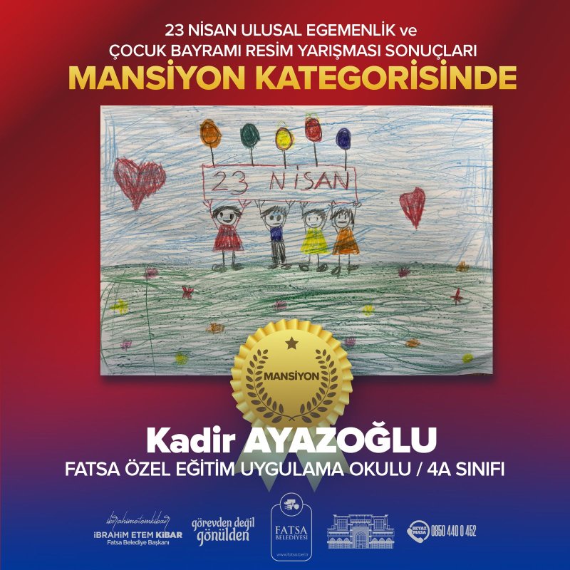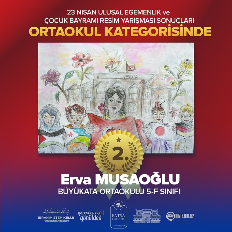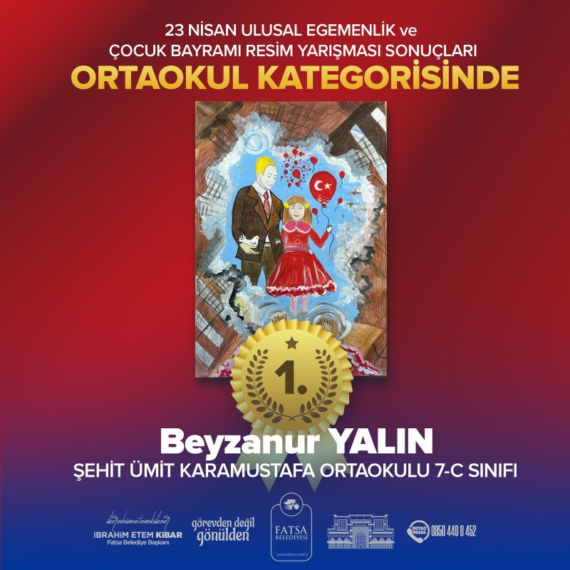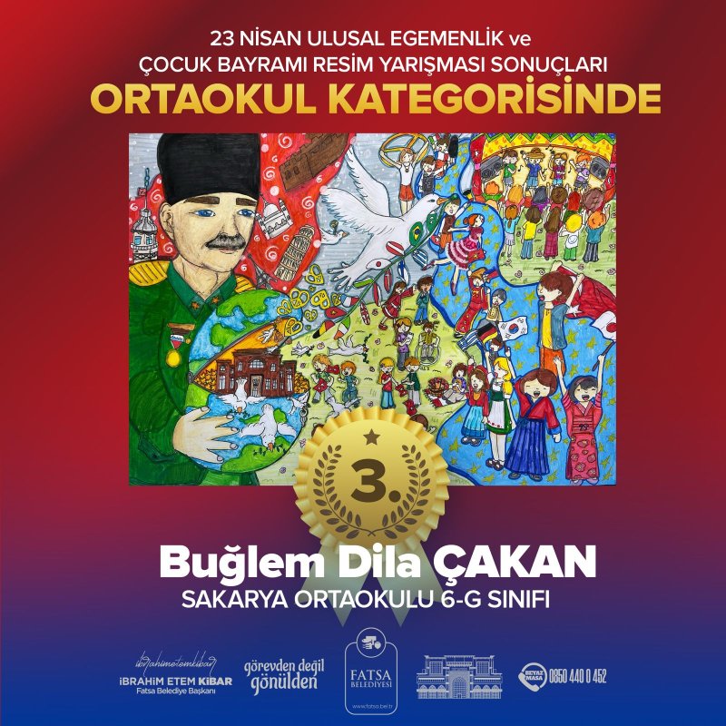 Fatsa Belediyesi olarak altıncısını düzenlediğimiz “23 Nisan Ulusal Egemenlik ve Çocuk Bayramı” konulu Resim Yarışması’nda dereceye giren öğrencilerimiz,