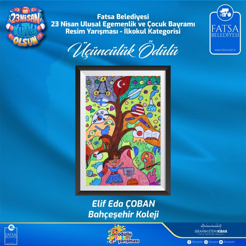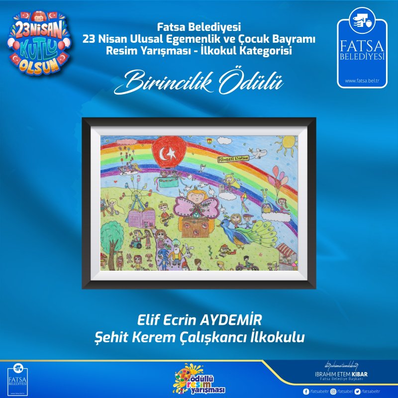Fatsa Belediyesi’nin; 23 Nisan Ulusal Egemenlik ve Çocuk Bayramı nedeniyle düzenlemiş olduğu ikinci geleneksel ‘Resim Yarışması’nda derece giren isimler şöyle: