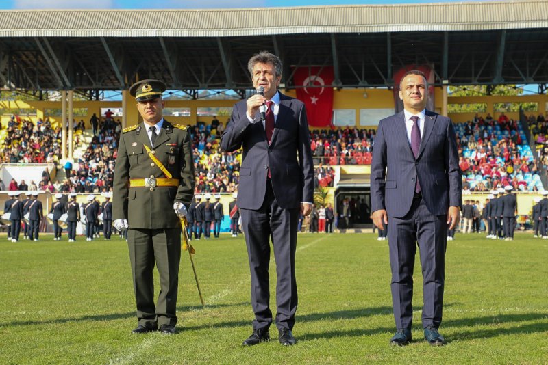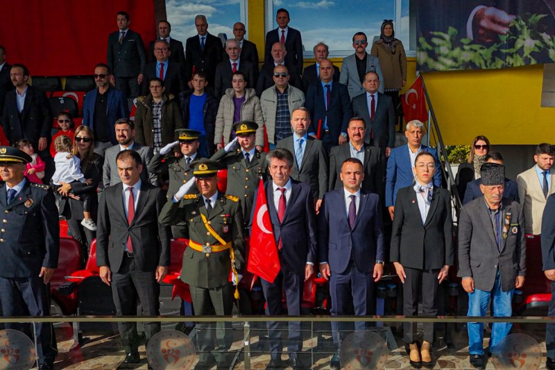 Törenden önce Kaymakam Avni Kula, Garnizon Komutanı Üsteğmen Erol Çukurova ve Belediye Başkanı İbrahim Etem Kibar, halkın ve öğrencilerin bayramını kutladı.