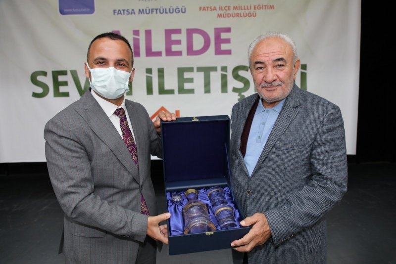 Konferansın sonunda Fatsa Kaymakamı Ömer Lütfi Yaran ve Fatsa Belediye Başkanı İbrahim Etem Kibar Yazar Vehbi Vakkasoğlu’na günün anısına çiçek ve hediye takdiminde bulundu. Daha sonra Vehbi Vakkasoğlu belediye tarafından programa katılanlara hediye edilen Aile’de Sevgi İletişimi ve Aile’de Sevgi Sohbetleri adlı kitaplarını imzaladı.
