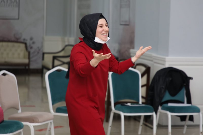 Eğitim sırasında bir konuşma yapan Şahin aile yaşantısında dik yokuşların ve riskli inişlerin olduğunu söyledi. Ailenin olduğu yerde duran, stabil bir kavram olmadığını belirten Drama Eğitmeni Naile Şahin, “Aile ilerleyen, iyi veya kötü anlamda değişen, gelişen bir şeydir. Çabanız ölçüsünde bir yolculuktur ve bu yolculuğun güzel zamanları, hoş manzaraları olduğu gibi; dik yokuşları, riskli inişleri vardır. Yol boyunca iklim değişir, şartlar değişir ama güzel olan bu güzellikleri ve zorlukları tek başınıza değil yoldaşınızla birlikte yaşamanız omuzlanmanızdır. Burdan yola çıkarak “Aile İçi Uyum” ve “İletişimde Kelebek Etkisi” nedir diyerek hayatımıza birer ayna tutmanın önemiyle; mottomuzu “Yaşamda Neyle Karşılaşmak İstiyorsan, Yankısını Oluşturabilmek İçin Bunu Önce Sen Yapmalısın” olarak belirlemeliyiz.