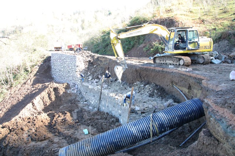 Fatsa’nın kırsal mahalleler arasında en uzak mahallelerden biri olan Aslancami mahallesinde geçtiğimiz aylarda meydana gelen heyelandan dolayı uçan yol geçici olarak trafiğe açılmasının ardından devasa taş tahkimat ile onarılıyor.