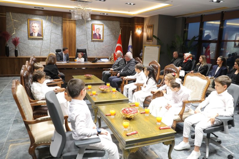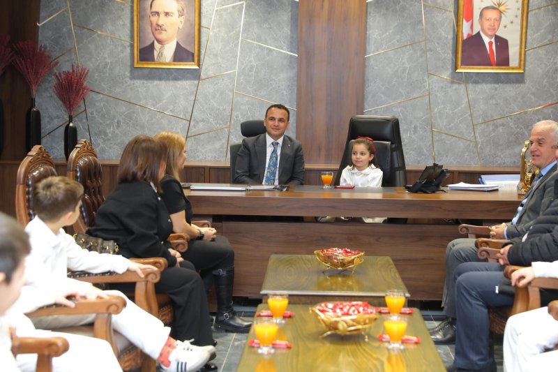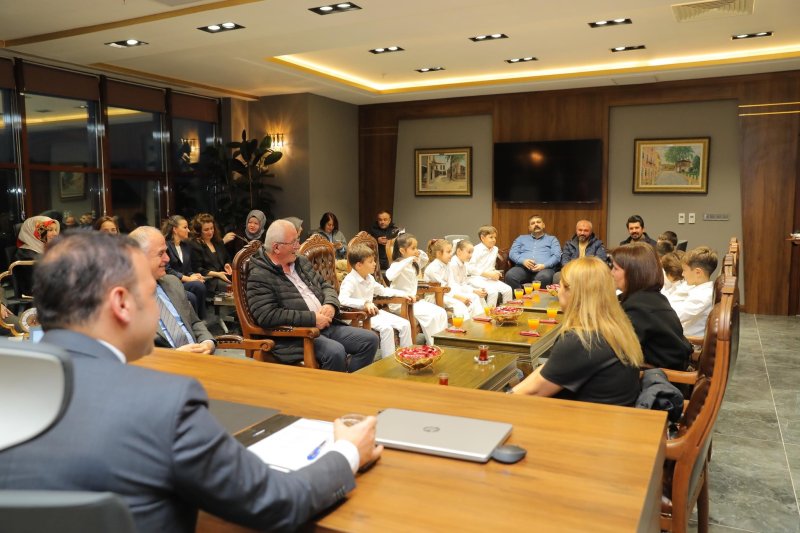 Fatsa Belediye Başkanı İbrahim Etem Kibar, İstiklal Marşı'nı güzel okuma yarışmasında ilçeyi gururla temsil ederek Ordu genelinde birinci olan Şehit Zafer Özdeniz İlkokulu 3. sınıf öğrencisi Elif Çeltek’i, yarışmaya katılan diğer öğrencileri, öğretmenlerini ve ailelerini makamında ağırladı.
