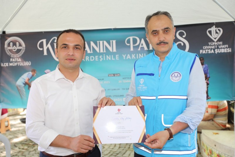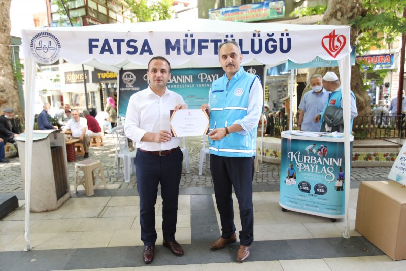 Fatsa Belediye Başkanı İbrahim Etem Kibar ise, ‘Kurbanını Paylaş Kardeşinle Yakınlaş’ sloganıyla başlayan Türkiye Diyanet İşleri Başkanlığımızın Diyanet Vakfı üzerinden bağışlanan kurban bağışını bizde ilçemizde İlçe Müftümüz ve İlçe Diyanet Vakfı Başkanımız Hamza Bayram öncülüğünde kurbanımızı ihtiyaç sahibi hemşerilerimize ulaştırmak üzere bağışımızı yaptık. Tüm hemşerilerimizi böylesine zor bir dönemden geçerken özellikle kurbanlarının doğru yere ulaşmasını noktasında hassasiyet göstermelerini rica ediyoruz. Diyanet İşleri Vakfımızın bu bağlamdaki çalışmaları geçmiş yıllarda da çok güzel bir şekilde doğru noktalara ulaşmıştır. Bu yılda tüm hemşerilerimizi Diyanet Vakfı üzerinden kurbanlarını bağışlamalarını tavsiye ediyoruz.” diye konuştu.