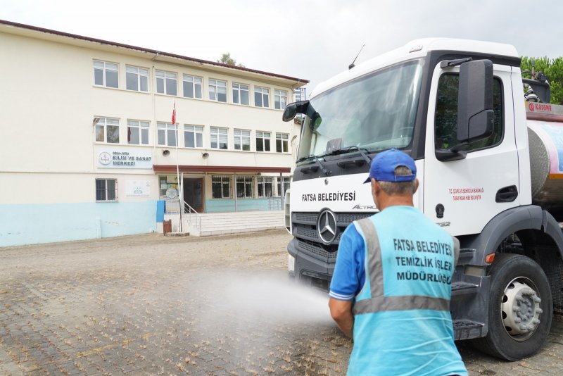 Okulların 12 Eylül 2022 Pazartesi günü eğitim ve öğretime başlayacak olması nedeniyle Fatsa Belediyesi Park ve Bahçeler Müdürlüğü ekipleri tarafından merkez ve kırsal mahallelerde bulunan okullarda yabancı otların tırpan motoru ile temizlendi, okul bahçelerinde bulunan ahşap malzemeler boyandı ve yine okul bahçelerinde yabancı otların büyümemesi için ilaçlama yapıldı. Temizlik İşleri Müdürlüğü ekipleri de aynı okullarda yıkama ve süpürme çalışması gerçekleştirdi.