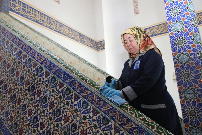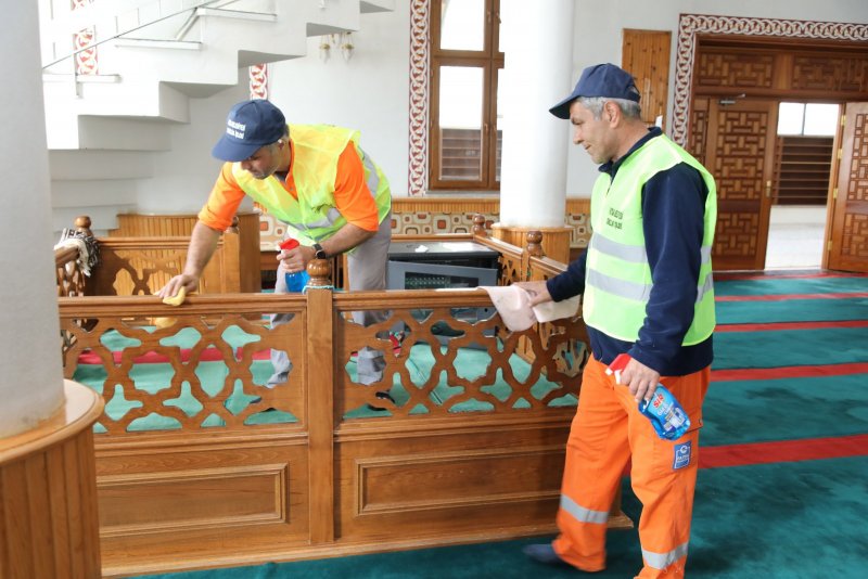 Temizlik İşleri Müdürlüğü’ne bağlı 2 bayan 2 erkek görevliden oluşan ekip, ilçe merkezinde bulunan camilerde temizlik çalışması yaptı.