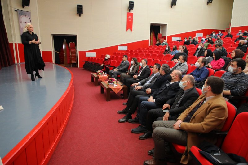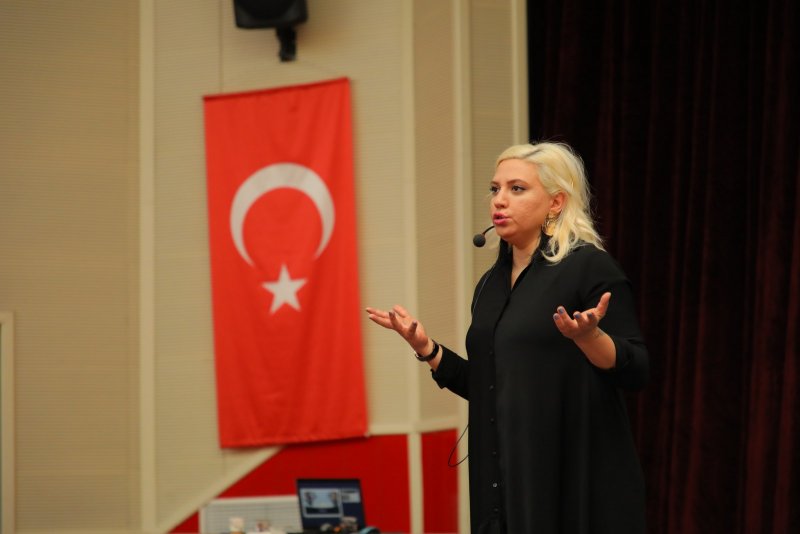 Eğitmen Ecem Erenoğlu oldukça faydalı bir bilgi paylaşımından sonra eğitim ile ilgili yaptığı açıklamada, insanı diğer canlılardan ayıran en önemli özelliği düşünebilme özelliği olduğunu belirterek, “Aslında doğamız gereği sürekli etkileşim içerisinde bulunduğumuzdan yalnızca düşünmek yeterli değildir. Düşündüklerini doğru ifade edebilmek ve bunu yaparken iletişimde bulunduğu kişilerde pozitif bir etki bırakabilmek, olumlu duygular uyandırabilmek son derece önemlidir. Konuşmak, her gün her dakika gerçekleştirdiğimiz bir eylem olsa da, etkili ve güzel konuşmak kendine yatırım yapmayı gerektiren değerli bir gelişim alanıdır. Çocukluktan itibaren bir takım yargılar ve inanç kalıplarına maruz kaldığımız için çoğu zaman kendimizi doğru ifade edemeyebiliyor, korkuyor ya da heyecanlanıyoruz. Bunları aşmanın teknikleri var. Bilirseniz ve uygularsanız endişeyi bir kenara bırakıp iletişim becerilerinizi üst seviyelere taşıyabilirsiniz.” dedi.