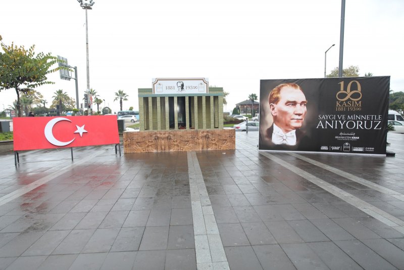 Fatsa Belediyesi 10 Kasım nedeniyle Cumhuriyet Meydanına devasa büyüklükte temsili Anıtkabir kurdu.