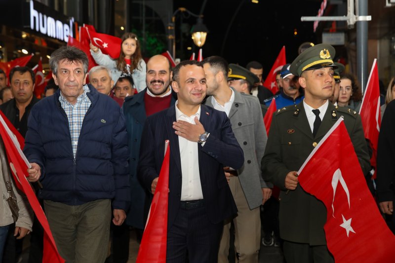 15 Temmuz Özgürlük Meydanı'ndan başlayıp Cumhuriyet Meydanı'nda sona eren Cumhuriyet Yürüyüşü’ne Kaymakam Avni Kula, Belediye Başkanı İbrahim Etem Kibar, Garnizon Komutanı Üsteğmen Erol Çukurova, kurum amirleri, siyasi parti temsilcileri, sivil toplum kuruluşu temsilcileri ve vatandaşlar katıldı.