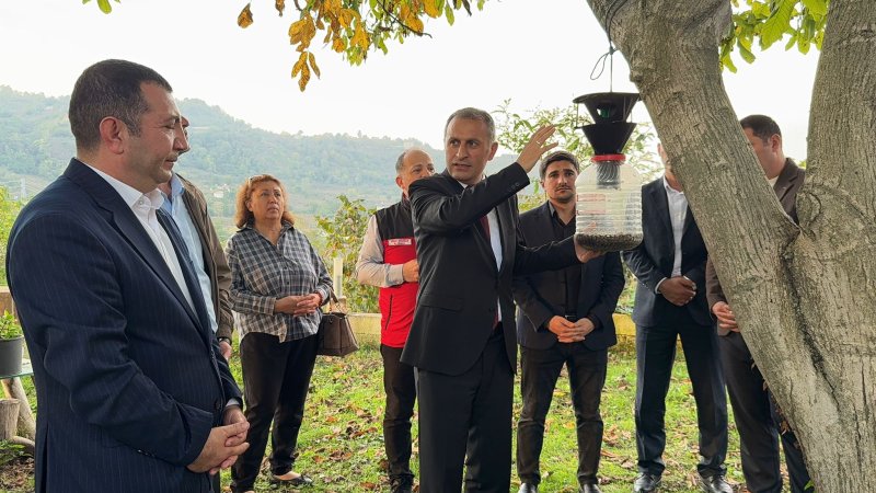 Heyet Fatsa belediyesi’ndeki toplantının ardından Meşebükü Mahallesi’nde Ahmet Şanlı‘nın bahçesine kokarca ile ilgili mücadeleyi uygulamalı olarak Azerbaycan heyetine anlattılar.