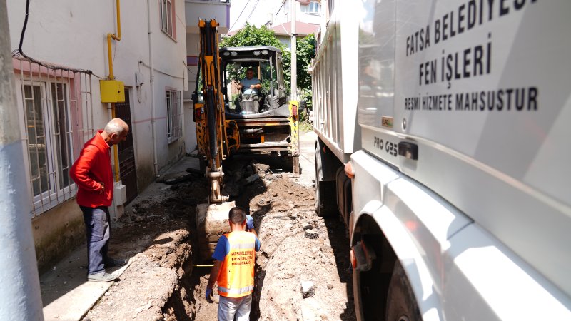 Fatsa Belediyesi Fen İşleri Müdürlüğü ekipleri Koza ve Nazlı sokakta yağmur suyu hattı çalışmalarına başladı.