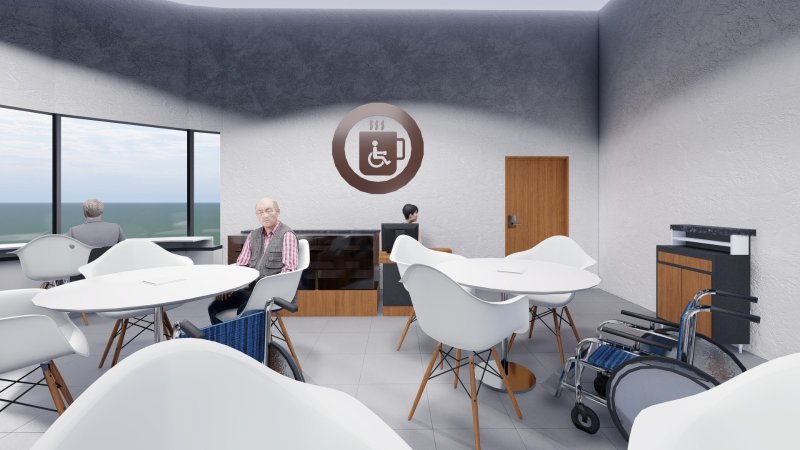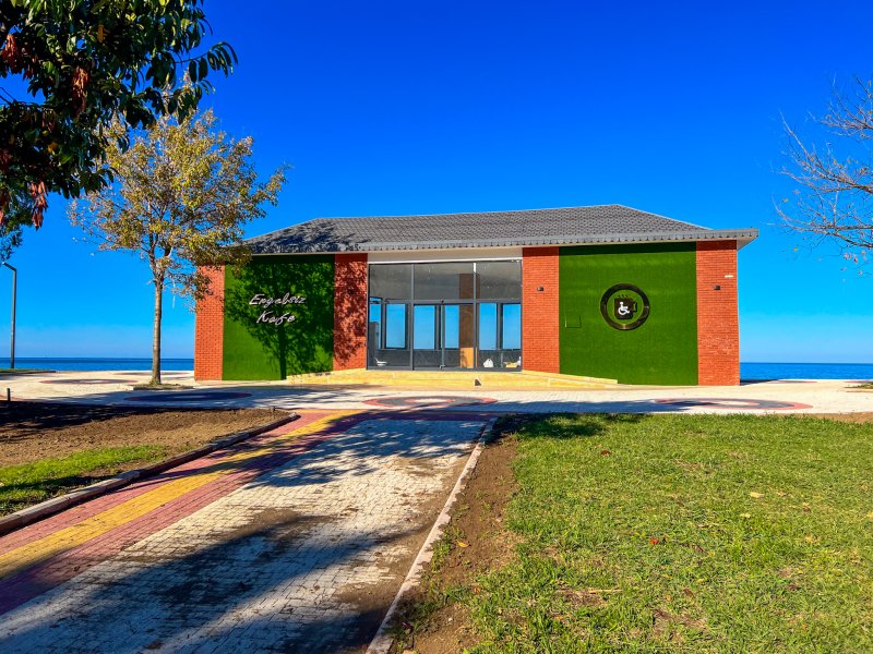 Şehrin sahil kısmında denize yakın bir konumda engelli bireyler için inşaatı tamamlanan Engelsiz Kafe’de akülü araçlar için şarj, engelli WC, mutfak, engelli bireylerin kullanımına uygun oturma alanları ve mobilyalar yer alacak.