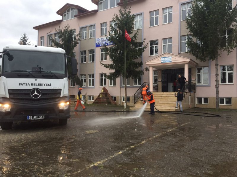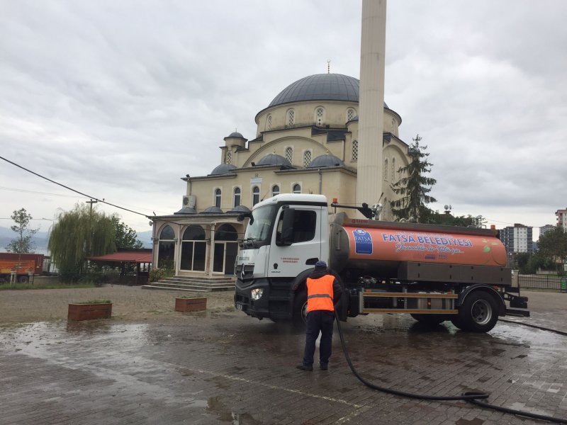 Temizlik İşleri Müdürlüğü’ne bağlı ekipler, ilçe merkezinde bulunan camilerin tamamında dezenfekte, yıkama çalışmalarını yaptı. Belediye ekipleri cami avlusunda yıkama çalışmalarının yanı sıra dezenfekte ve cami içerisinde silme süpürge yaptılar. Fatsa Belediye Başkanı İbrahim Etem Kibar camilerin İslam medeniyetinin her anlamda merkezi olduğunu belirterek, “Hem şehir hem de bireysel ve toplumsal gelişme anlamında camiler, İslam dininde merkezi bir konumdadır. Milletimizin birliğine dirliğine ve beraberliğine bireysel ve toplumsal gelişmesine, kalkınmasına din görevlilerimizin, imam kardeşlerimizin çok büyük katkısı ve gayretleri vardır. Özellikle bizim kültürümüzde geçmişten bugüne kadar camilerimiz, sadece ibadetlerimizi icra ettiğimiz bir mekân değil, aynı zamanda tarihimizin ve kültürümüzün bir arada yaşandığı merkezlerdir. Bu müstesna mekânların sadece toplum için değil birey olarak da bizlerin hayatında yeri büyüktür. Ben bütün din görevlisi kardeşlerimi bir kere daha yürekten kutluyorum. Allah hepsinden razı olsun” ifadelerini kullandı.