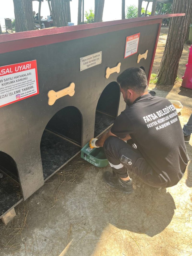 Fatsa Belediyesi insan yoğunluğunun olmadığı gölgelik ve ağaçlık alanlara koyulan yemlik ve sulukları düzenli aralıklarla kontrol ederek gerekli takviyeleri yapıyor. Sadece beslenmelerine değil, sokak hayvanlarının kısırlaştırma, aşılama, tedavi ve rehabilitasyonuna da destek oluyorlar.