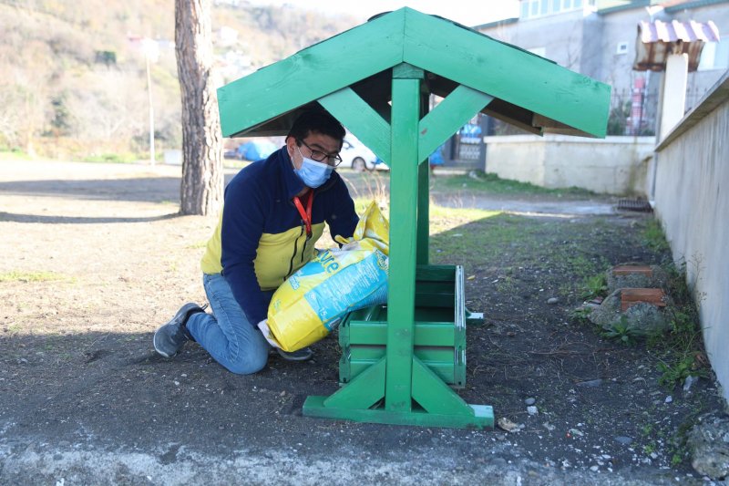 Fatsa Belediyesi, sokağa çıkma kısıtlaması dolayısıyla yeni yılın ilk gününde sokakta yaşayan sahipsiz hayvanlar için belli yerlerde beslenme noktaları oluşturdu.