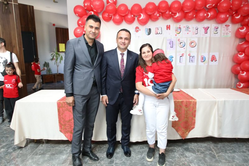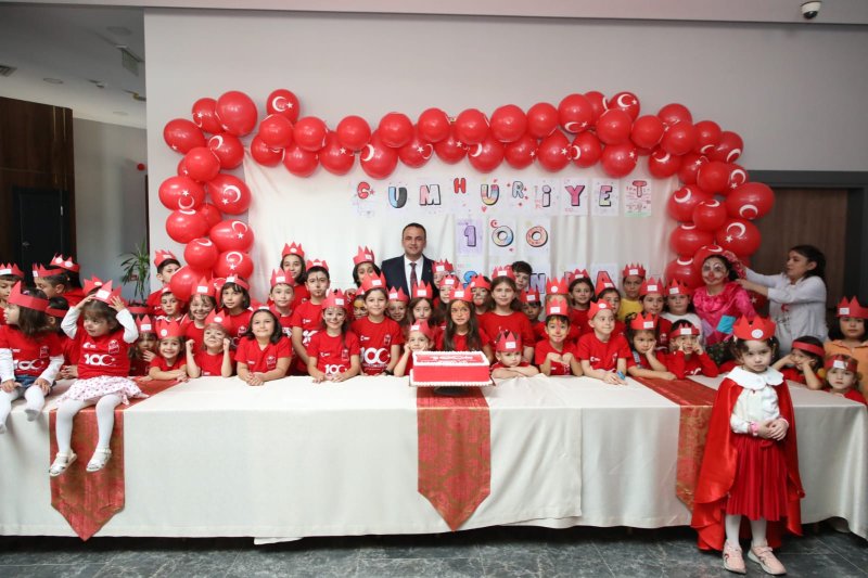 Belediye Başkanı İbrahim Etem Kibar, Sosyal Tesisler'in özel hazırlanmış bölümünde, çocuklarla, üzerinde “Türkiye Cumhuriyetimizin 100. Yılı Kutlu Olsun” yazılı pastayı birlikte kesti. Başkan Kibar burada yaptığı konuşmada, “Cumhuriyetimizin 100. yılı kutlu olsun. 100'üncü yıl Şehrimizin dört bir tarafında güzel etkinliklerle Cumhuriyetimizin 100. Yılını dolu dolu kutlamaya gayret ediyoruz. Bu vesile ile başta Cumhuriyetimizin kurucusu Gazi Mustafa Kemal Atatürk ve silah arkadaşları olmak üzere ahirete intikal etmiş tüm şehitlerimizi ve gazilerimizi rahmet ve minnetle anıyorum. Çocuklarımıza, gençlerimize bırakacak olduğumuz en büyük, en önemli miras olan Cumhuriyetimizi 100'üncü yılına büyüklerimizle birlikte getirdik. İnşallah bu bayrağı onlara devredeceğiz. Onlar da çok daha iyi noktalara taşıyacak. Ben de şahsım olarak Cumhuriyetimizin 100. Yılında bu şehrin Belediye Başkanı olmaktan bu güzel şehre hizmet etmekten onur ve gurur duyuyorum.” dedi.