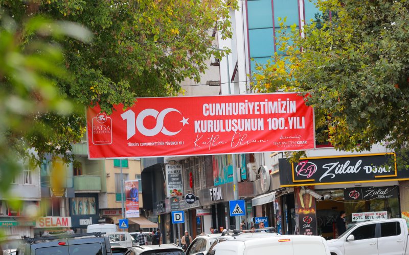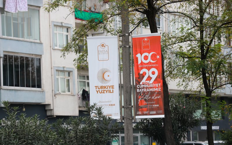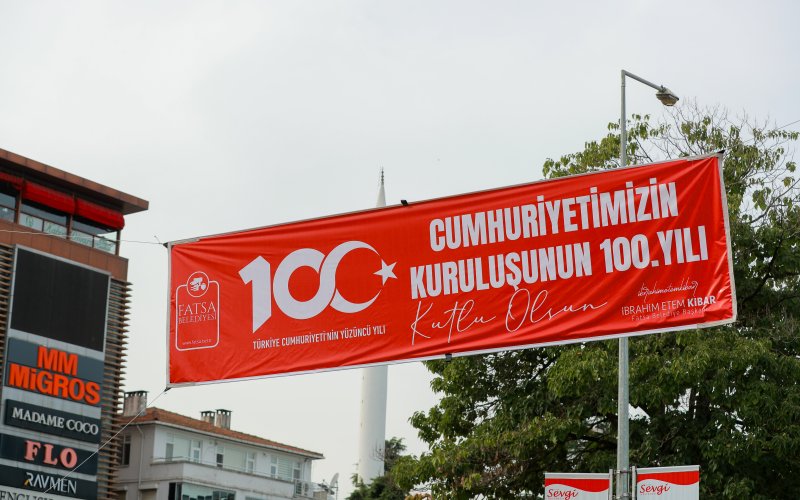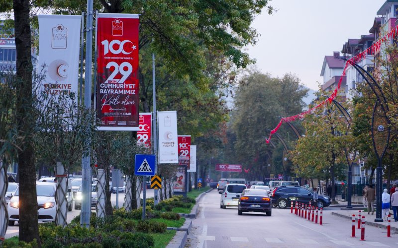 Fatsa Belediyesi, Cumhuriyet’in kuruluşunun 100. yılında sokakları Türk bayraklarıyla donattı.