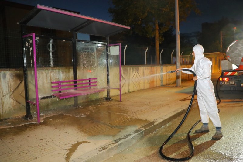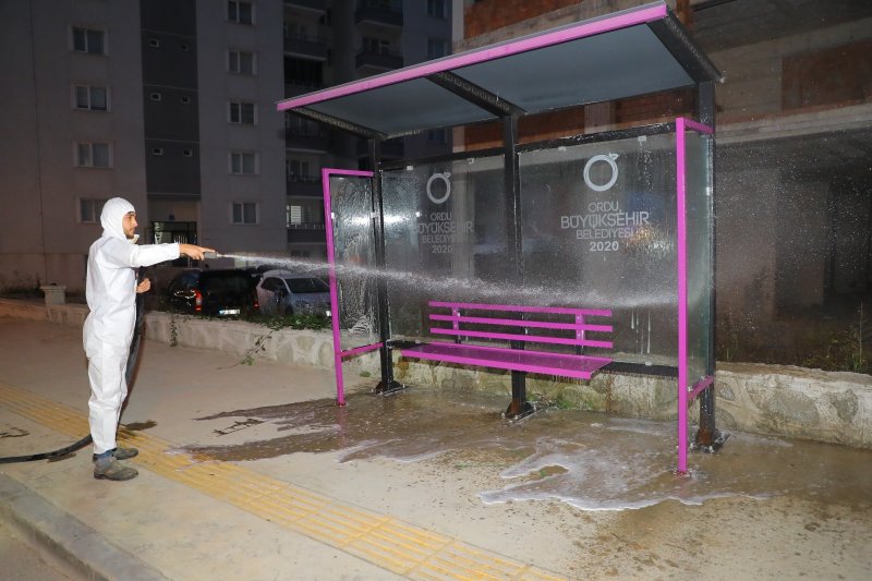 Fatsa Belediyesi Temizlik İşleri Müdürlüğü ekipleri toplu ulaşım araçları duraklarında detaylı temizleme ve dezenfeksiyon çalışması yapmaya devam ediyor.