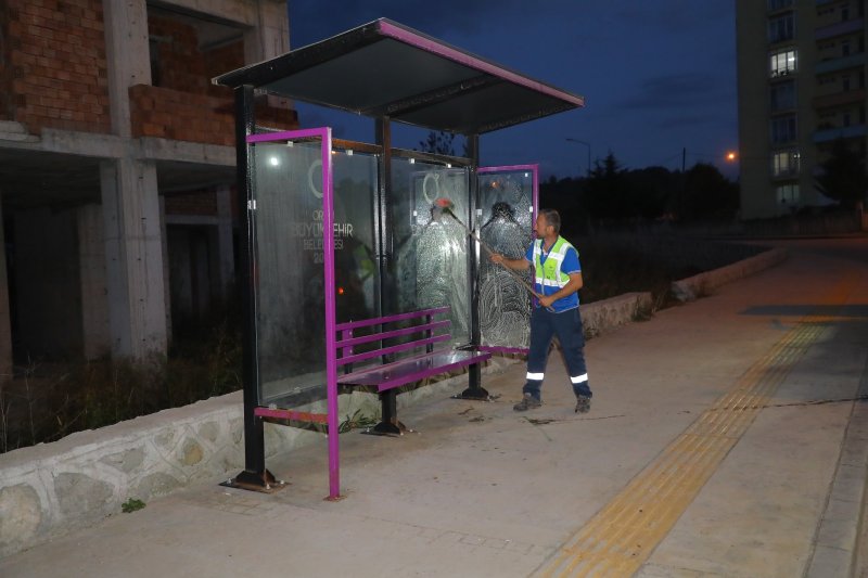 FATSA BELEDİYESİ EKİPLERİNDEN DOLMUŞ DURAKLARINA GENEL TEMİZLİK ÇALIŞMASI