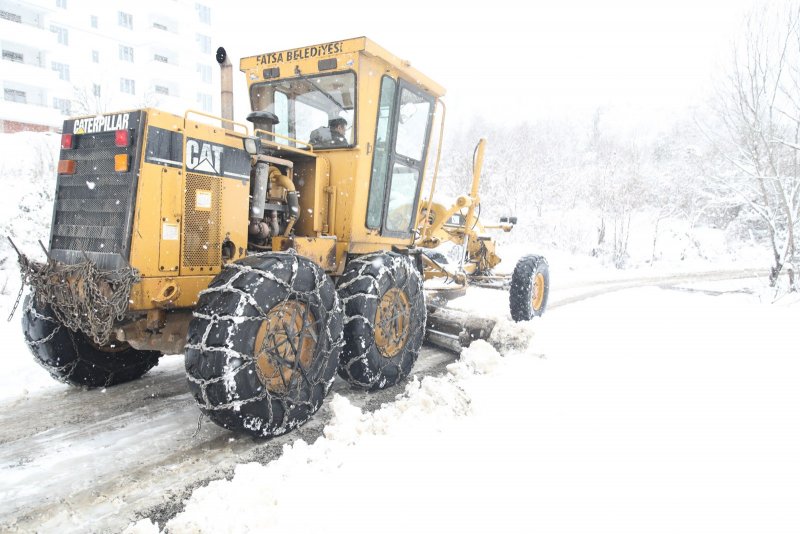 Şehrin dört bir yanında çalışmalarını sürdüren Fatsa Belediyesi, 10 Beko Loder, 4 greyder, 3 tuzlama, 5 kar küreme ve 4 Loder araç ve 65 kişiden oluşan karla mücadele ekibi, kırsal mahallelerde karla kaplanan yolları açıyor, şehir merkezinde kaldırımlarda kar küreme ve yollarda tuzlama çalışmaları yapıyor.