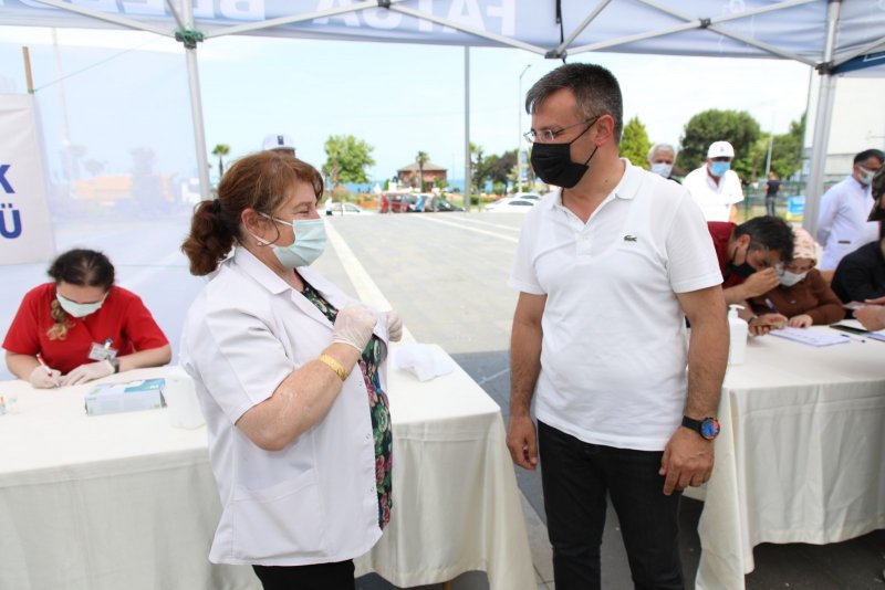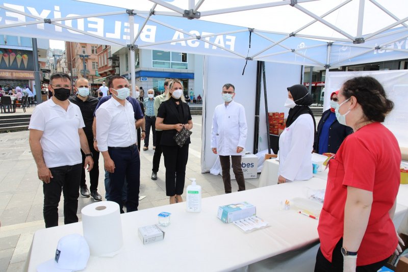 Sağlık Bakanlığı’nın tüm Türkiye’de başlattığı aşı seferberliğine Fatsa Belediyesi, İlçe Halk Sağlığı Müdürlüğü ile birlikte “Aşı için Kolları Sıva Fatsa” sloganı ile destek vererek Cumhuriyet Meydanı’nda aşı uygulama noktası kurdu. Aşılamayı yaygınlaştırmak, hızlandırmak ve aşı hakkında halkı bilinçlendirmek amacıyla Cumhuriyet Meydanı’nda kurulan aşı uygulama noktasına vatandaşlar yoğun ilgi gösterdi. Vatandaşlar, aşı olmak için stant önünde uzun kuyruklar oluşturdu. Fatsa Belediye Başkanı İbrahim Etem Kibar’ da İlçe Başkanı İsa Yüksel ile Cumhuriyet Meydanındaki aşı standını ziyaret ederek yürütülen kampanya hakkında İlçe Sağlık Müdürü Dr.Işıl Aralan’ dan bilgiler aldı. Başkan Kibar aşısını vurulmaya gelen vatandaşlara da ‘Geçmiş olsun’ diyerek koronavirüs konusunda biraz daha tedbiri elden bırakmamaları konusunda uyarılarda bulundu.
