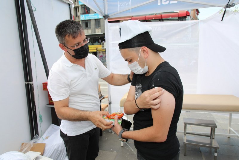 Fatsa Belediyesi, Sağlık Bakanlığı’nın yaş gruplarını düşürerek koronavirüsle mücadele konusunda başlattığı aşı seferberliğine, Cumhuriyet Meydanı’nda kurduğu aşı standı ile destek oldu.