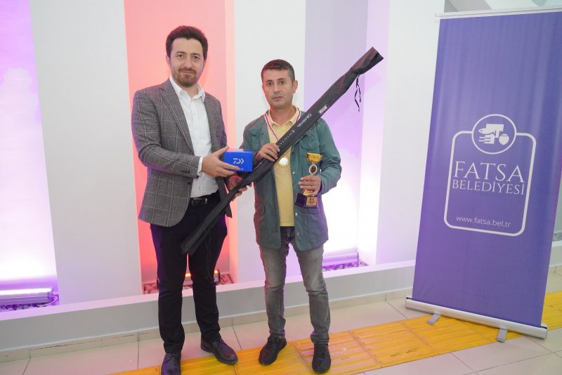 Üçüncü Geleneksel Balık Avı yarışmasının şampiyonu Halil İbrahim Oturaklı’nın Daiwa Legalis Makine, Daiwa Legalis Kamış ödülünü Fatsa Belediye Başkanı İbrahim Etem Kibar, ikinci Tahir Bekar’ın Daiwa Ninja Makine, Daiwa Ninja Kamış ödülünü İlçe Başkanı İsa Yüksel ve üçüncü Ercan Akgül’ün Daiwa Crossfire Makine, Daiwa Ninja Kamış ödülünü ise İlçe Başkan Yardımcısı Av. Muhammet Özkan takdim etti.