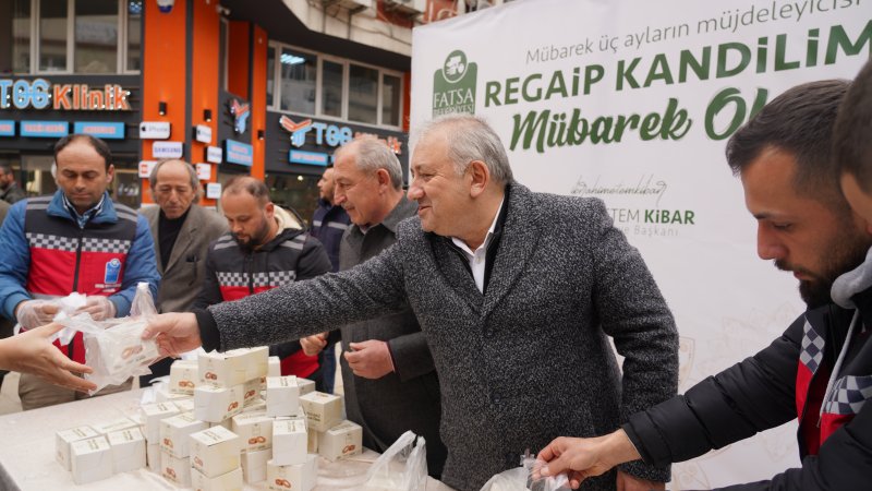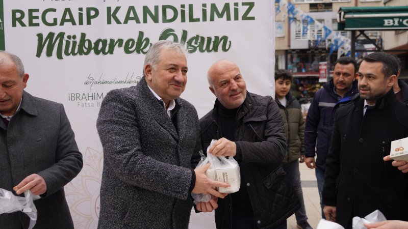 Fatsa Belediyesi tarafından Regaip Kandili nedeniyle vatandaşlara kandil simidi dağıtımı yapıldı. Kandil simidi dağıtımına Fatsa Belediye Başkan Vekili Muharrem Okyay Sarıhan da katıldı. Fatsa Belediye Başkan Vekili Muharrem Okyay Sarıhan, bütün İslam âleminin Regaip Kandili’ni tebrik etti.