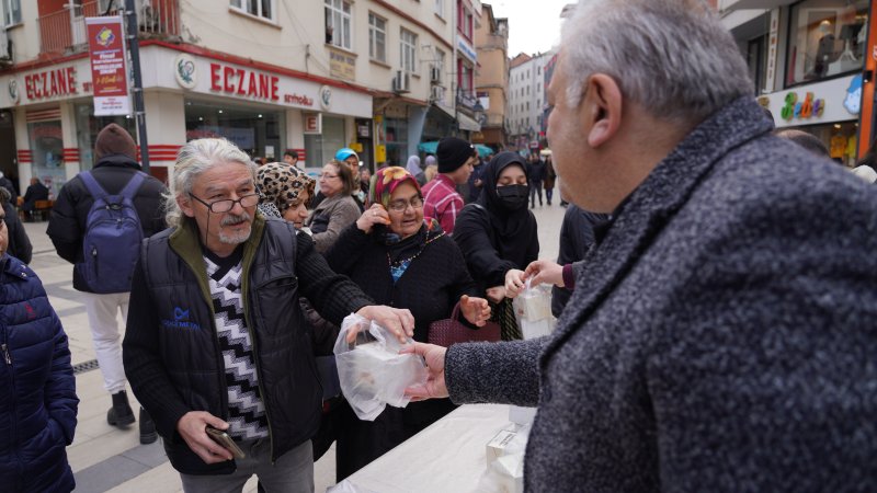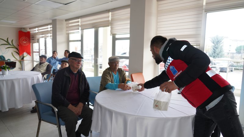 Plevne Meydanında kandil simidi dağıtımından sonra belediye görevlileri Fatsa Huzurevine de giderek oradaki vatandaşlara da kandil simidi ikramında bulundular.