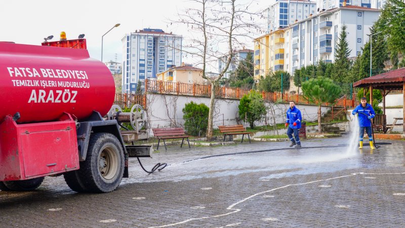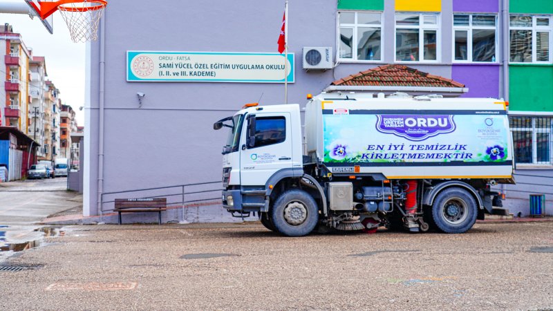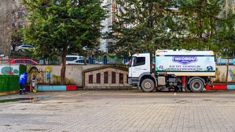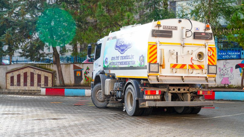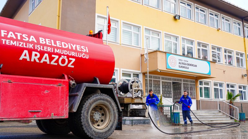Fatsa Belediyesi Temizlik İşleri Müdürlüğü ekipleri, ara tatil boyunca kullanılmayan okul bahçelerinde ve çevresinde genel temizlik çalışması başlattı. Öğrencilerin daha sağlıklı bir ortamda eğitim görmeleri için gerçekleştirilen temizlik faaliyetinde okul bahçeleri süpürüldü, yıkandı, çöp ve atıklar toplandı.