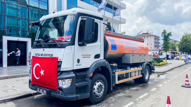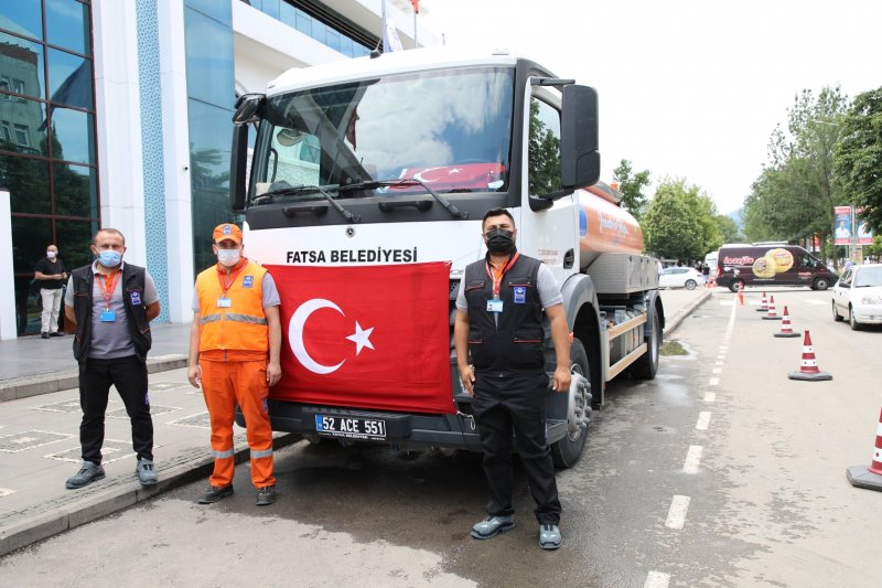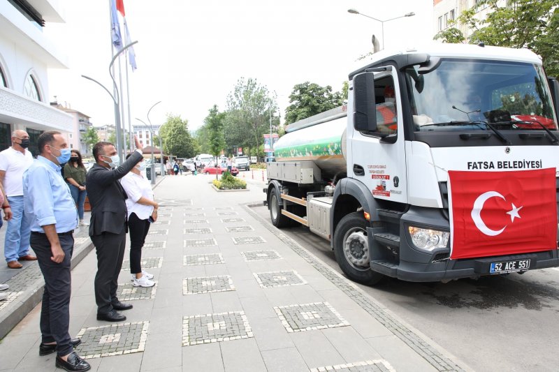 Antalya’nın Manavgat ilçesinde başlayan yangının söndürme çalışmalarına katkı sağlamak için Fatsa Belediyesi Temizlik İşlerine ait 1 arazöz yola çıktı. Fatsa Belediyesi önünden aracı Fatsa Belediye Başkanı İbrahim Etem Kibar uğurladı.