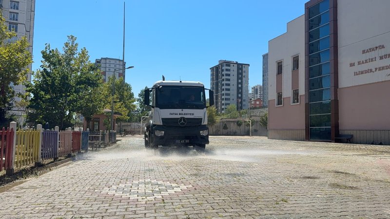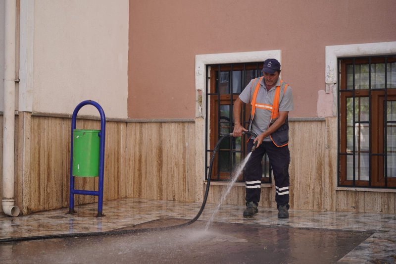 Temizlik İşleri Müdürlüğü ile Park ve Bahçeler Müdürlüğü ekipleri, şehir genelindeki okullarda ot temizliği ve bahçe düzenlemelerinin yanı sıra tazyikli suyla yıkama çalışmaları gerçekleştirdi. Okul bahçelerinde ilk olarak tırpanla yabani otların temizlenmesi yapıldı. Ardından, bahçelerin zeminleri ve çevresi tazyikli suyla yıkanarak çocukların oyun ve dinlenme alanları hijyenik hale getirildi. Böylece öğrencilerin okul hayatına daha ferah ve sağlıklı bir ortamda başlaması hedeflendi.