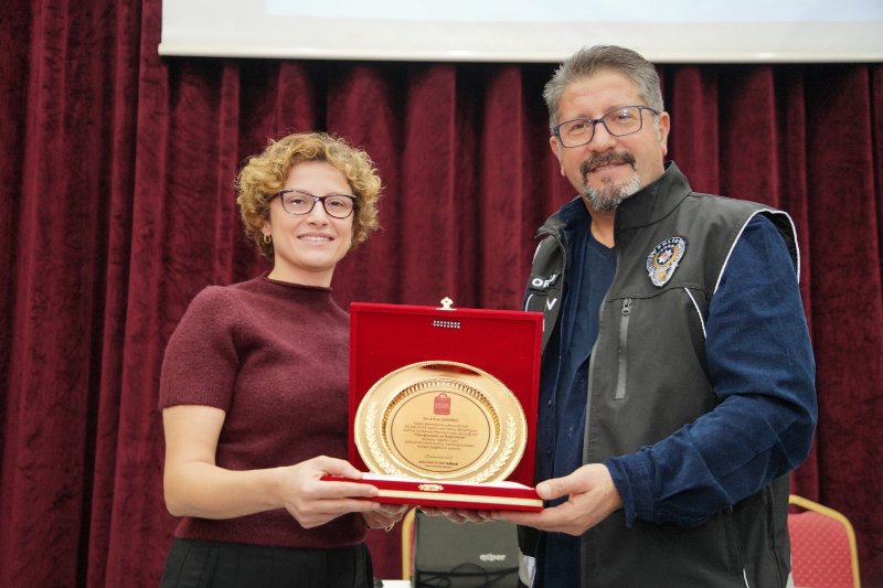 Eğitim sonunda Polis Memuru Erhan Demirci ve Polis Memuru Oğuzhan Orhan Eroğlu’na İnsan Kaynakları Eğitim Müdürü Gülçin Zan Yıldırım ve Temizlik İşleri Müdürü Erdem Yuva tarafından plaket takdiminde bulunuldu.