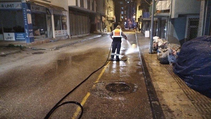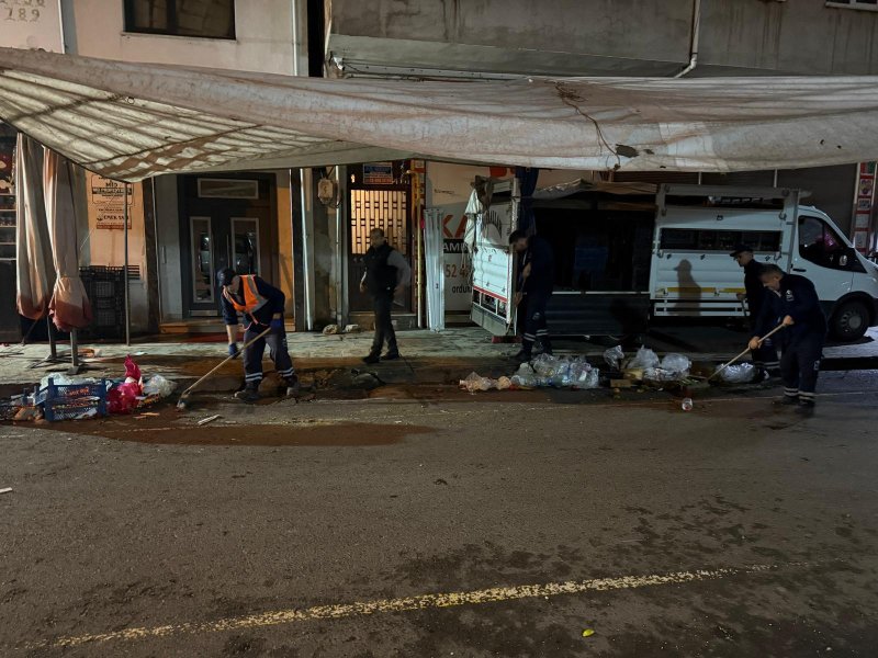 Pazarın sona ermesinin ardından sahaya çıkan ekipler, tezgâhların kaldırılmasının hemen ardından pazaryerlerinde detaylı temizlik, yıkama ve dezenfeksiyon çalışmaları yürütüyor. Ekipler, gece geç saatlere kadar süren bu çalışmalarda pazar alanlarını bir sonraki gün için tertemiz hale getiriyor.