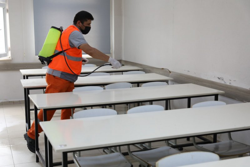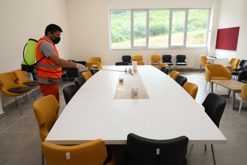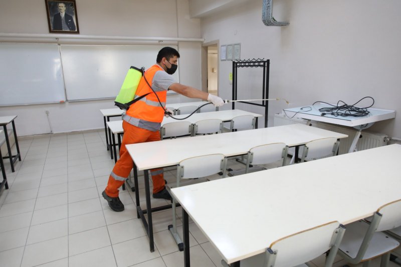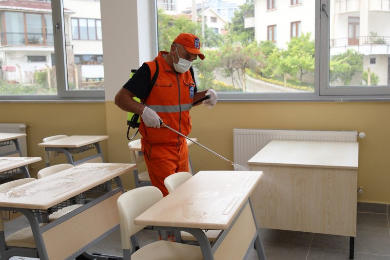 ÖSYM tarafından sınav merkezi olması kararlaştırılan Fatsa’da ki okulların Fatsa Belediyesi Temizlik İşleri Müdürlüğü’ne bağlı ekipler tarafından dezenfeksiyon işlemi gerçekleştirdi. Adayların üç farklı oturumda ter dökeceği sınıflar, özel solüsyonlarla zeminden tavana temizlendi. Sınav salonu olarak belirlenen sınıflardaki sıra, masa ve kürsülerin tümüne dezenfeksiyon işlemi yapılarak hijyenik koşullar sağlandı. Okullar, bahçelerinden lavabolarına, merdiven korkuluklarından sınıflarına kadar temizlendi.