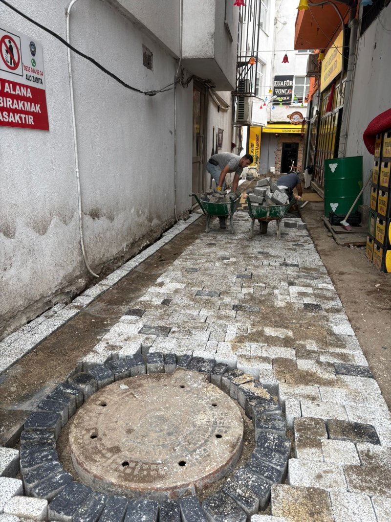 Bu kapsamda; Mustafa Kemal Paşa Mahallesi Kervan Sokak’ta begonit taş yapım çalışmaları devam ediyor. Evkaf Mahallesi’nde Ayyıldız Sokak’ta asfalt yama, Sedef Sokak’ta ise asfalt tamir çalışmaları yürütüldü. Fatih Mahallesi Orhan Veli Sokak’ta asfalt onarımı yapıldı. Dumlupınar Mahallesi Nazmiye Komitoğlu Sokak Parkı’nda duvar boyama çalışmaları yapıldı. Ayazlı Mahallesi Kandır Sokak’ta yaya geçidi çizimi ve hız kesici montaj işlemleri gerçekleştirdi. Eczacı İlhan Hazinedar Ortaokulu bahçesinde çizim çalışmaları yapıldı. Evkaf Mahallesi Kartal Sokak’ta ise yağmur suyunun taşıdığı serbest malzeme temizlenerek yol güvenliği sağlandı.