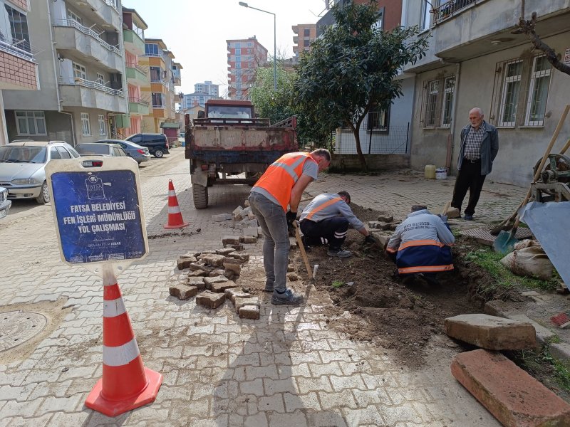 Fatsa Belediyesi Fen İşleri Müdürlüğü ekipleri, ilçe genelinde vatandaşların güvenli ve konforlu ulaşımını sağlamak amacıyla parke tamir çalışmalarına hız kesmeden devam ediyor.