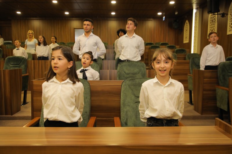 Fatsa Çocuk ve Gençlik Korosunun Koro Öğrencileri Fatsa Belediye Başkanı İbrahim Etem Kibar'a gercekleştirdikleri ziyaret de hep birlikte kendisine, "Samanyolu" şarkısını söyleyerek jest yaptılar.